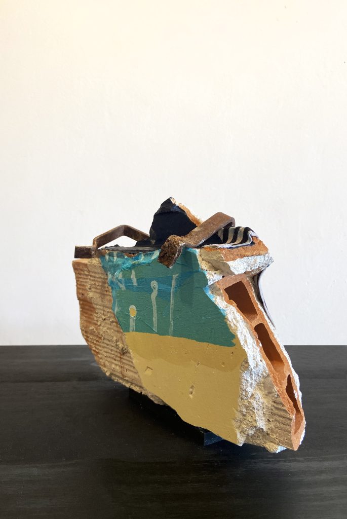 En este proyecto trabajo desde la ruina para dar valor a su historia. Desarrollo con ella un retrato psicológico desde la honestidad de los materiales de construcción. Hablo de muros y escombros, de quienes los habitaron, de la vida cotidiana y las emociones que conviven en nuestro interior. De la felicidad triste de las celebraciones, de mensajes sencillos y verdaderos y del desamparo que encuentro en el color azul cielo, el favorito de los niños.